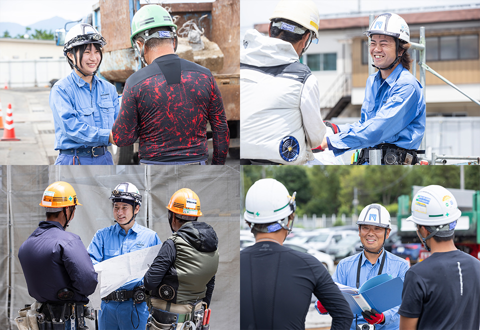 現場では、多くの協力会社の職人さんたちと力を合わせながら工事を進めています。当社では単なる協力体制にとどまらず、技術力と安全意識を共有し、高め合うパートナーシップを大切にしています。その中心となるのが、約60社が加盟する協力会「柏栄会」です。柏栄会では、各社が持つ施工技術や現場のノウハウを活かしながら、安全大会や意見交換会を通じて、より良い施工体制の構築に取り組んでいます。 柏栄会は、柏井建設を支える大きな力であり、信頼と技術が循環する貴重なネットワークです。熟練の職人さんたちと日々の現場を共にすることで、実践を通じて技術や仕事の姿勢を学べる環境が整っています。