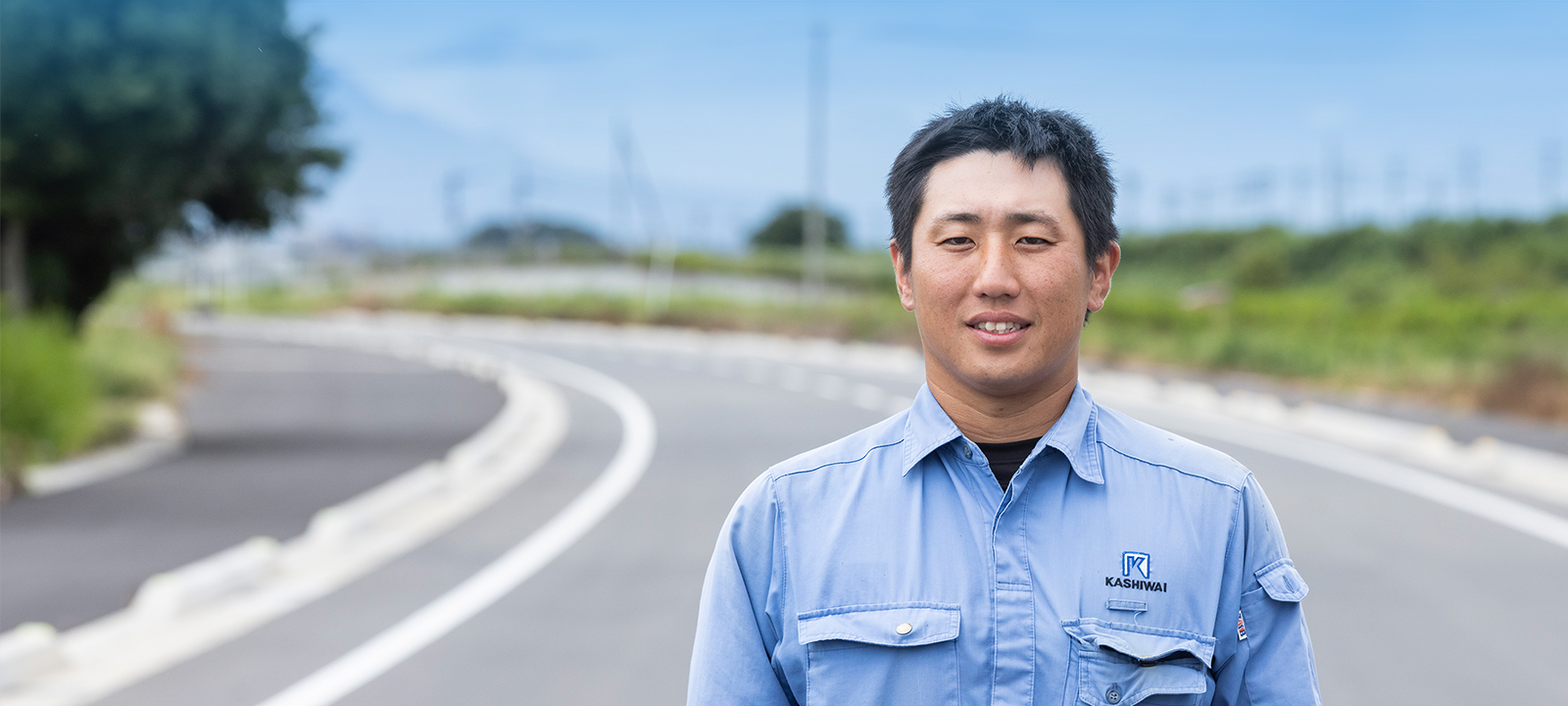 入社のきっかけは、高校で土木科を学んでいたこともあり、建設業界での就職を考えていました。その時、当時の先生から柏井建設を勧められました。